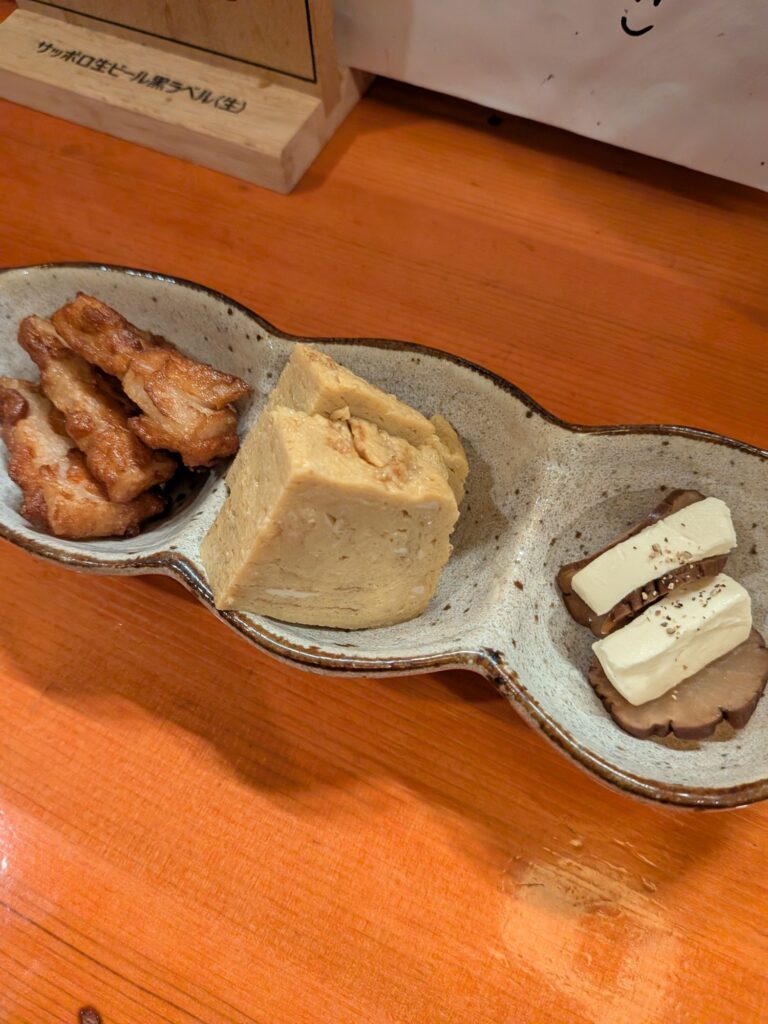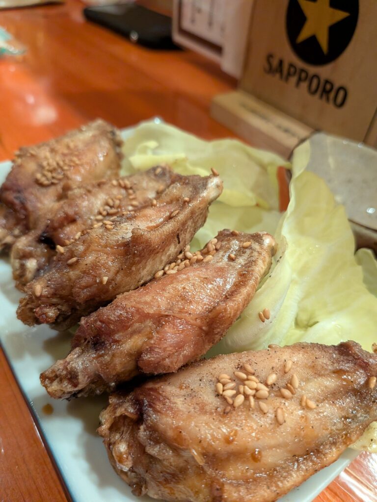 手羽からとアテ3種が付いてくる晩酌セットがオススメ