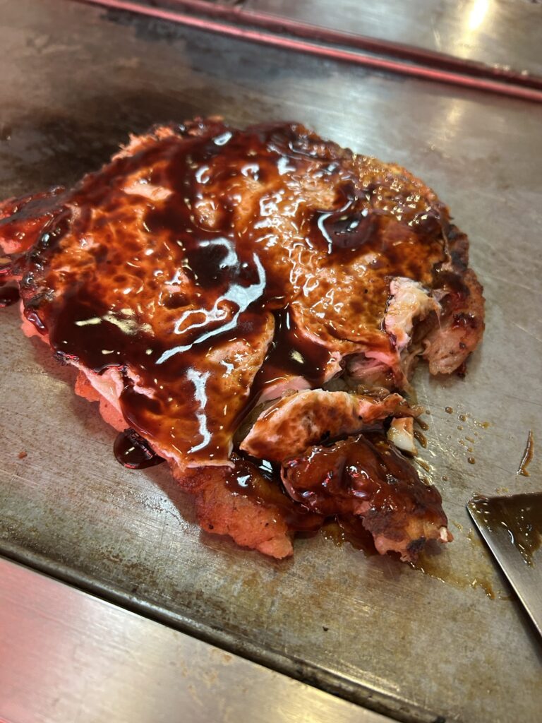 ふみやの代名詞である牛脂で焼き上げるお好み焼き