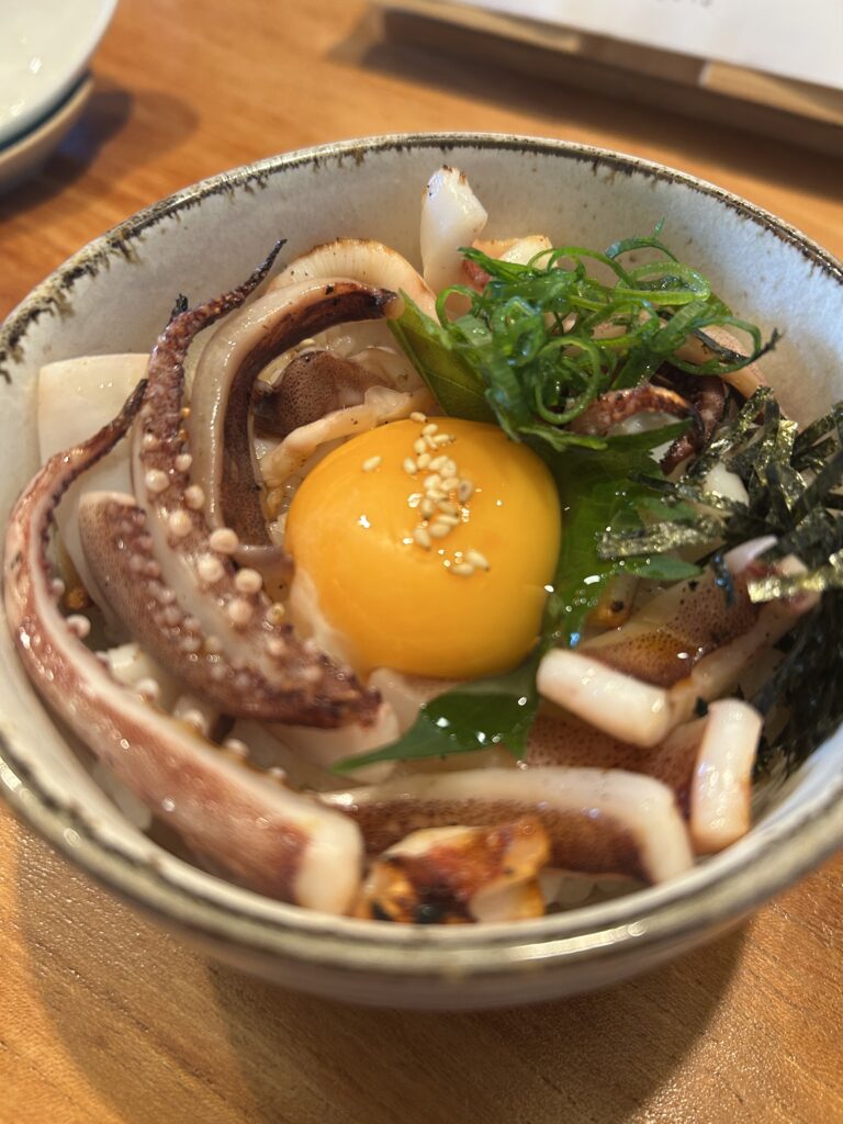 炭火で焼かれた香ばしさと絶妙な火加減で焼かれたイカの食感がたまらない