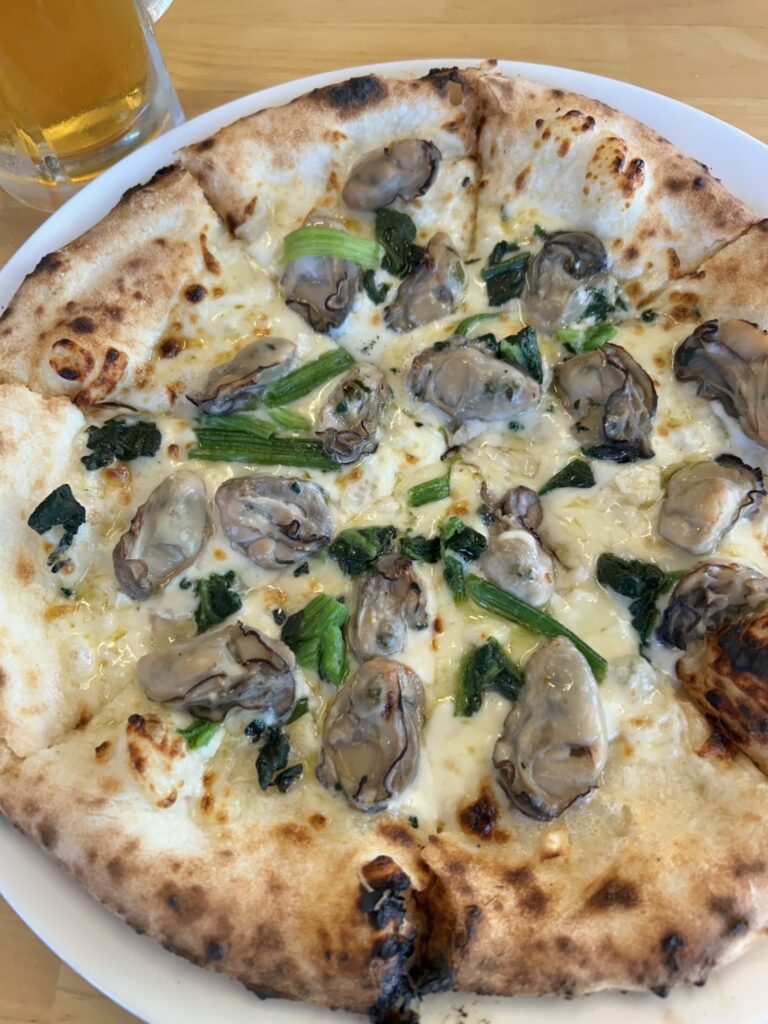 冬に行ったので牡蠣が乗ったピザ
